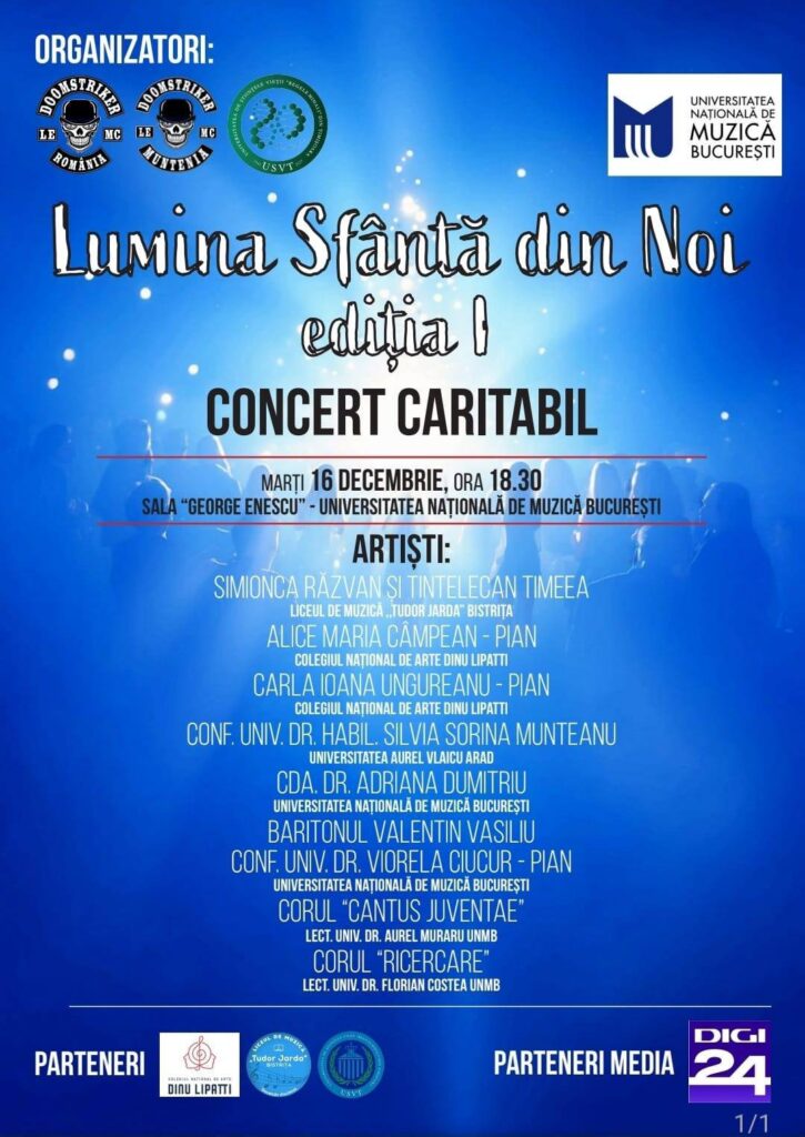Pe 16 decembrie, Clubul Doomstriker LEMC Romania a organizat un concertul caritabil „Lumina Sfântă din Noi”, dedicat lui Ciprian Balici, artist liric al Operei Naționale Timișoara și motociclist pasionat, care a trecut recent printr-un accident și are nevoie de sprijinul oamenilor și a comunității. Liceul Tudor Jarda Bistrita a fost alături de această inițiativă la […]