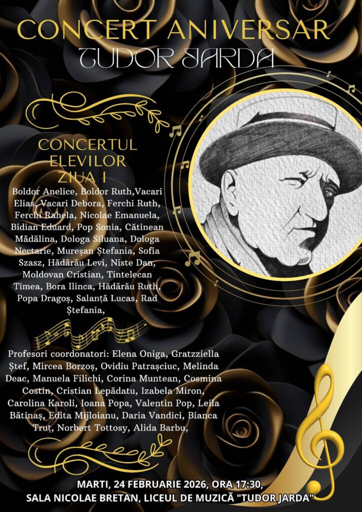 Două seri pline de emoție și muzică, cu ocazia celebrării zilelor „Tudor Jarda”. Marți și miercuri de la ora 17.30, elevii noștri vă invită la două concerte speciale, în care talentul, munca și pasiunea pentru muzică vor prinde viață pe scenă. Publicul va avea ocazia să asculte un repertoriu variat, cu lucrări din diverse perioade