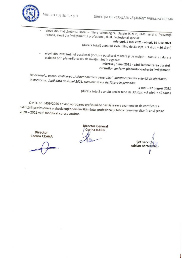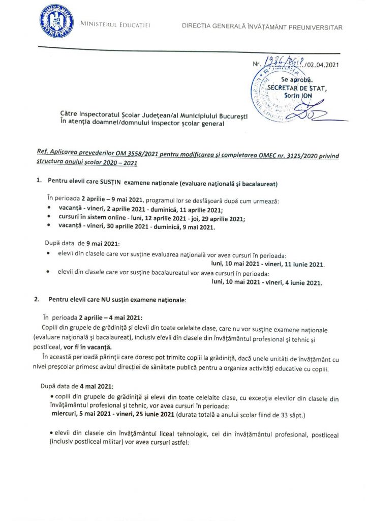 Aplicarea prevederilor OM 3558/2021 pentru modificarea și completarea OMEC nr.3125/2020 privind structura anului școlar 2020-2021General / aprilie 2, 2021 / Leave a Comment