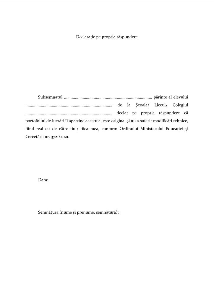 - Declarația pe propria răspundere privind autenticitatea înregistrării;