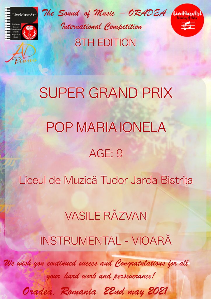 Pop Maria Ionela, vioară, cls III – Super Grand Prix