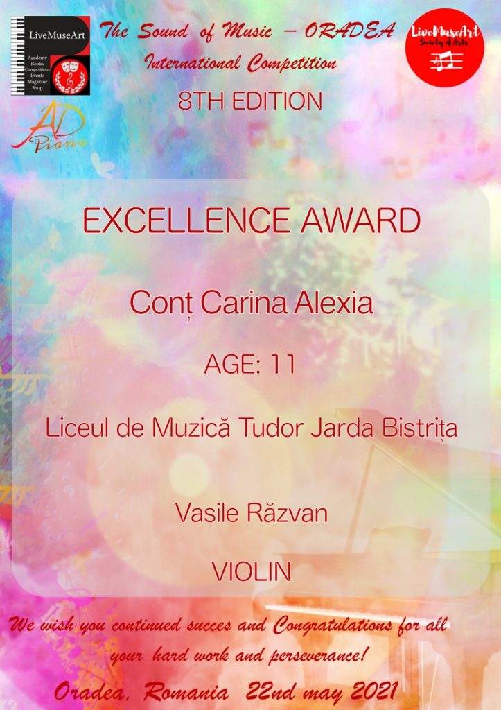 Conț Carina Alexia, vioară, cls IV – Excellence Award