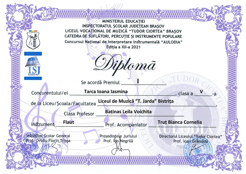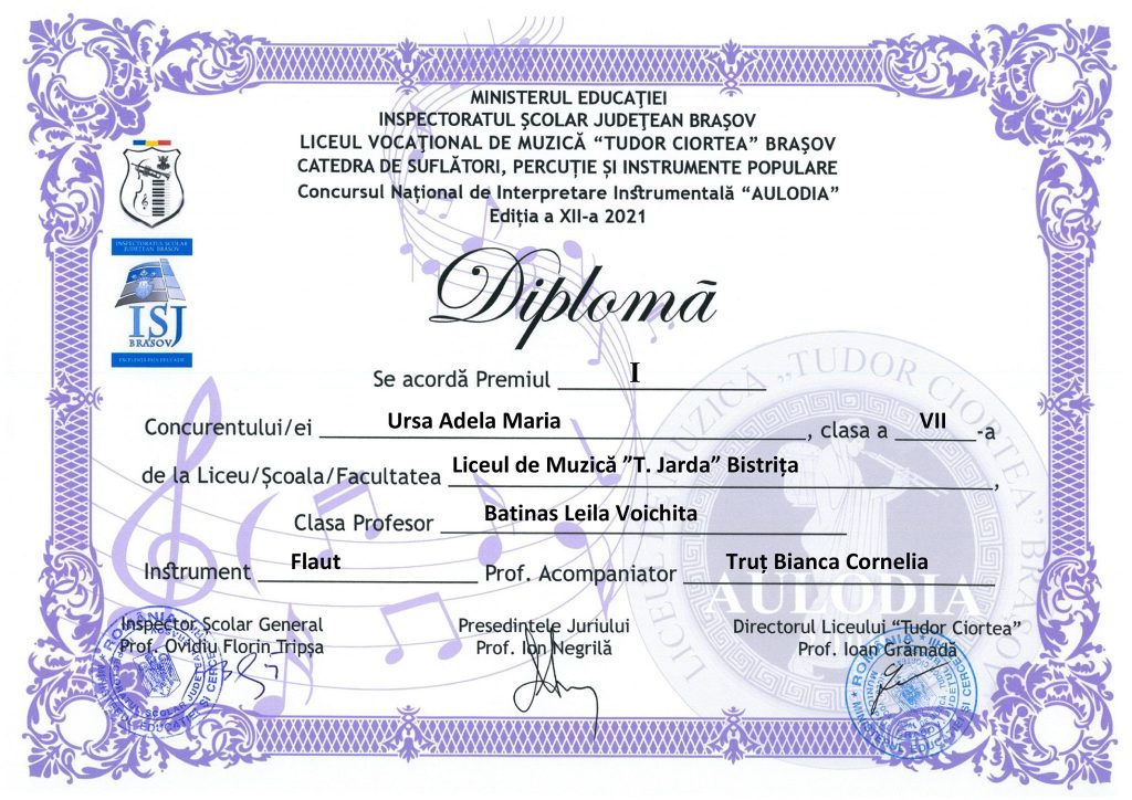 Veștile bune continua și cu elevii talentați de la catedra de suflători. Elevele doamnei profesoare de flaut Bătinaș Leila, au adus premii frumoase liceului nostru la Concursul National de Interpretare instrumentală „Aulodia”.