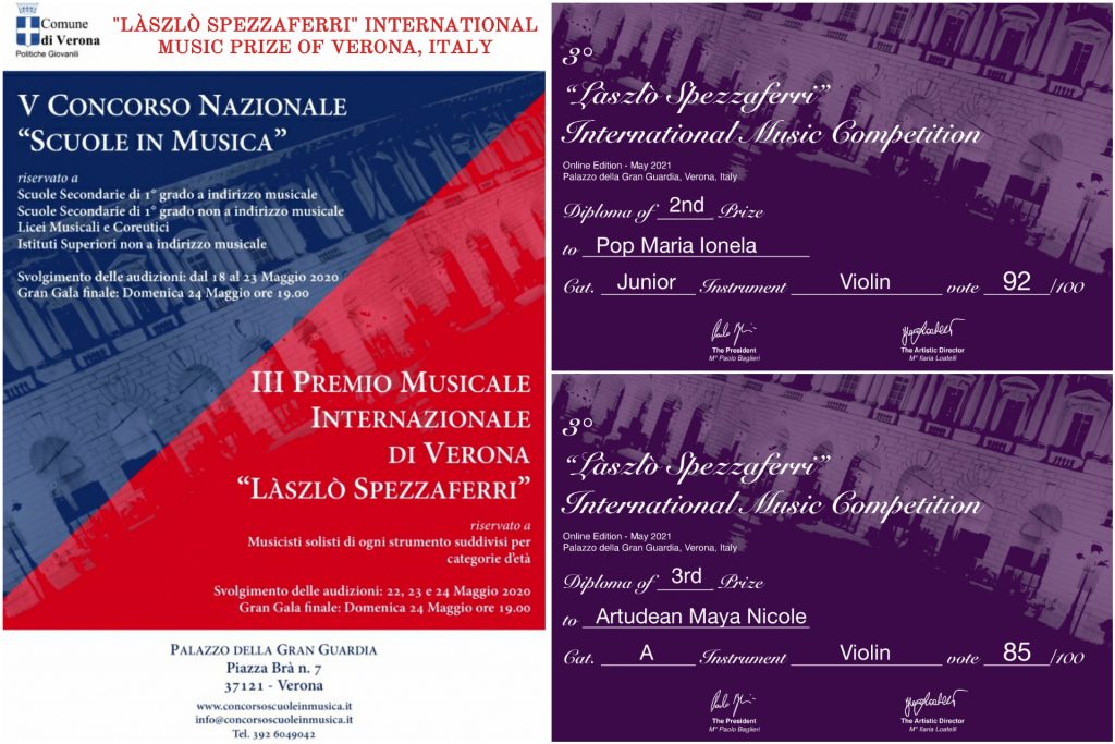 Suntem bucuroși pentru două rezultate excepționale într-o competiție internațională de renume: „Laszlo Spezzaferri” International Competition Music Prize of Verona, Italia.