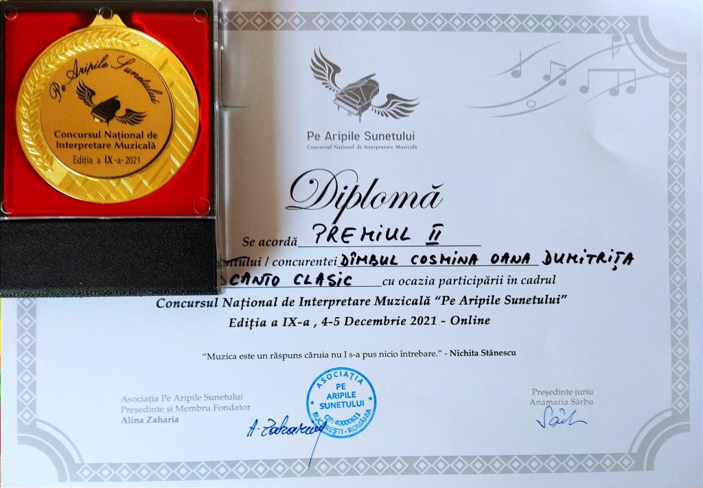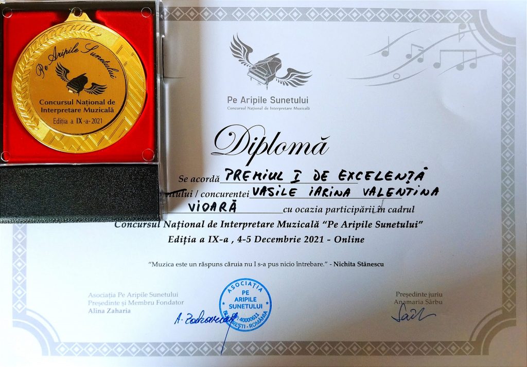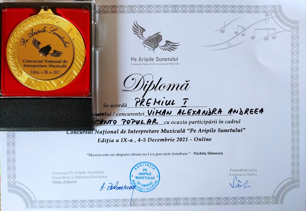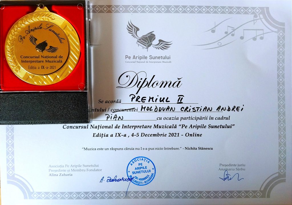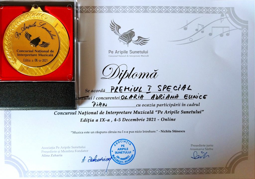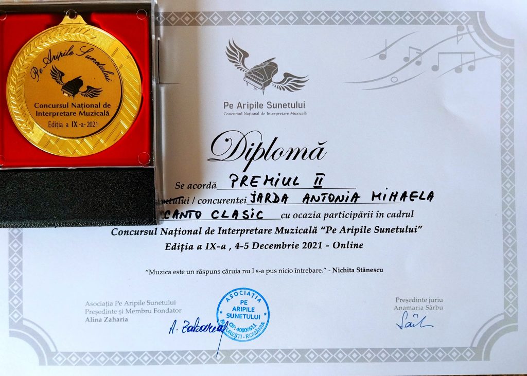 Primim din nou vesti frumoase de la elevi talentați, de data aceasta de la Concursul National de Interpretare Muzicală „Pe Aripile Sunetului”, Ediția IX-a, 4-5 Decembrie 2021 – online.