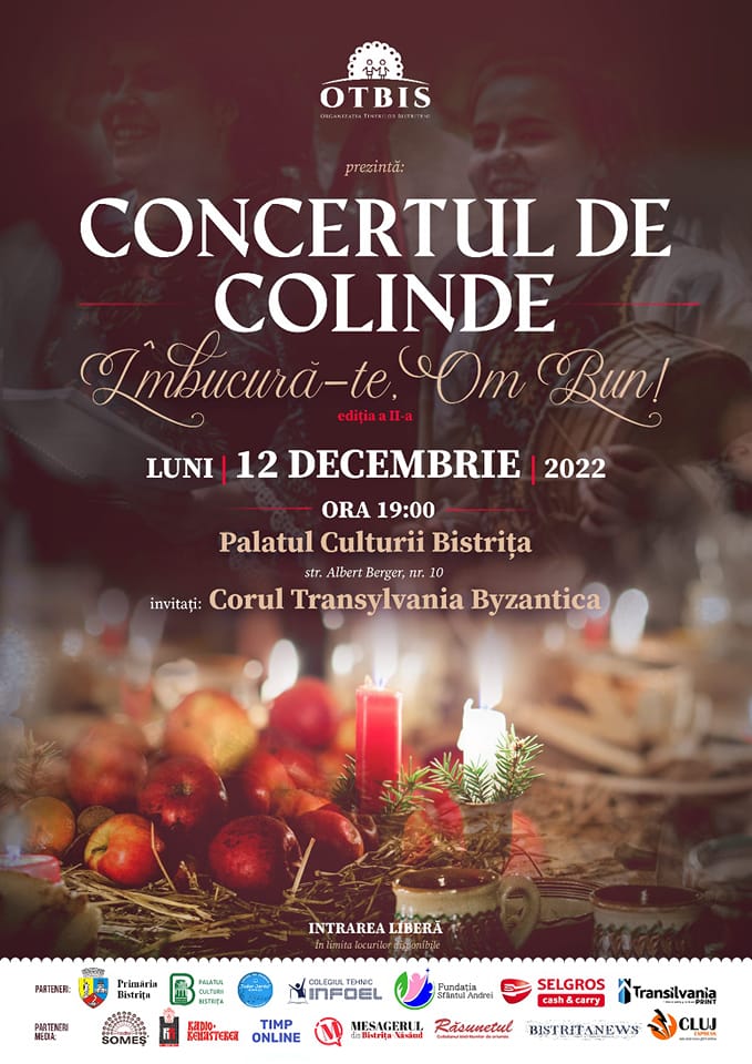 Noi, ceata de colindători a Organizației Tinerilor Bistrițeni, pornim cu colinda! Vă invităm cu bucurie să ne fiți Gazde, să ne primiți colinda și urarea, pe data de 12 Decembrie 2022, începând cu ora 19:00, la Palatul Culturii din Bistrița.