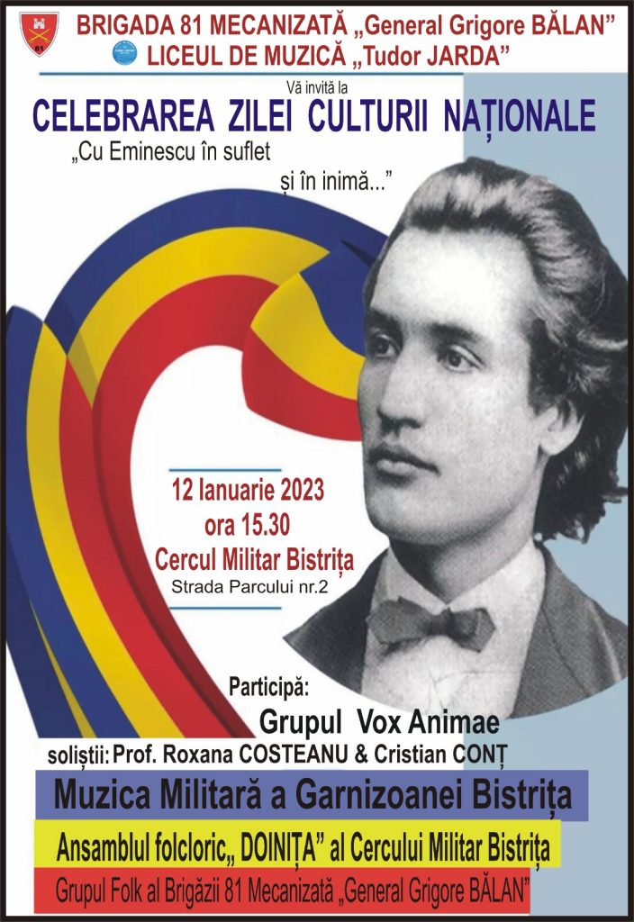 De Ziua Culturii Naționale, vă prezentăm filmări din activitatea desfășurată cu Muzica Militară a Garnizoanei Bistrița, dirijor Bogdan Bejinariu.