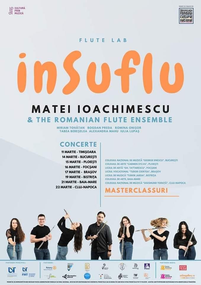 Renumitul flautist Matei Ioachimescu aduce la Bistrița proiectul “inSuflu”, alături de Romanian Flute Ensemble, duminică, 19 martie, de la ora 19:00, la Sinagogă și un workshop susținut la LMTJ.