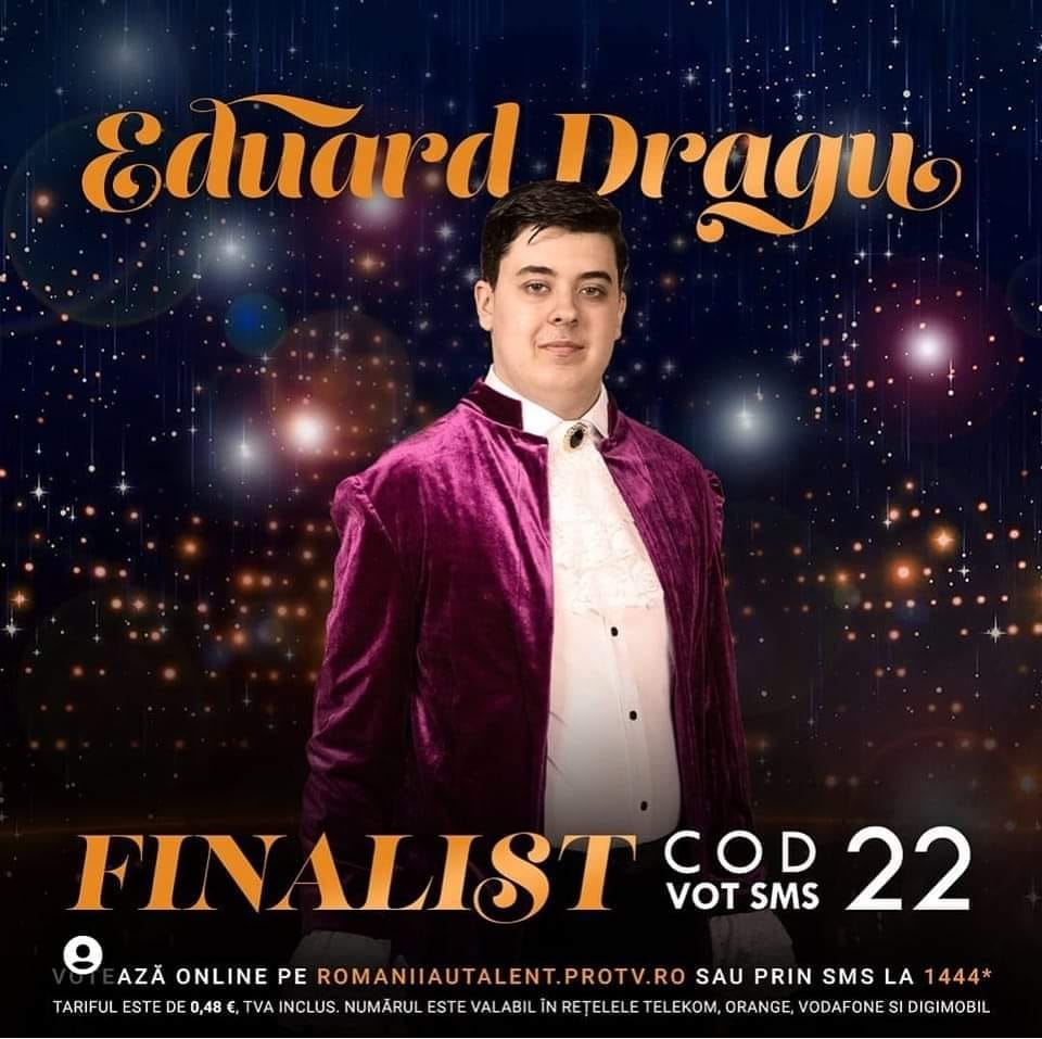 Vă invităm ca și în această seară să fiți alături de Eduard Dragu, elev în clasa a XII-A la LMTJ. Vă rugăm să sa îl votați prin sms la 1444 cod vot sms 22 sau online pe romaniiautalent.protv.ro. Haideți să îl ajutăm să își împlinească visul. Mult succes dragă Eduard.