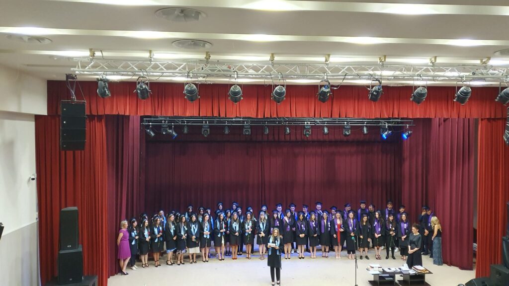 Festivitatea de premiere a claselor XII A (23 elevi, specializarea Muzică) și XII B (30 elevi- specializarea Educator-Învățător), diriginți prof. Ioana Popa și Iulia Ani: culoare și emoție.
