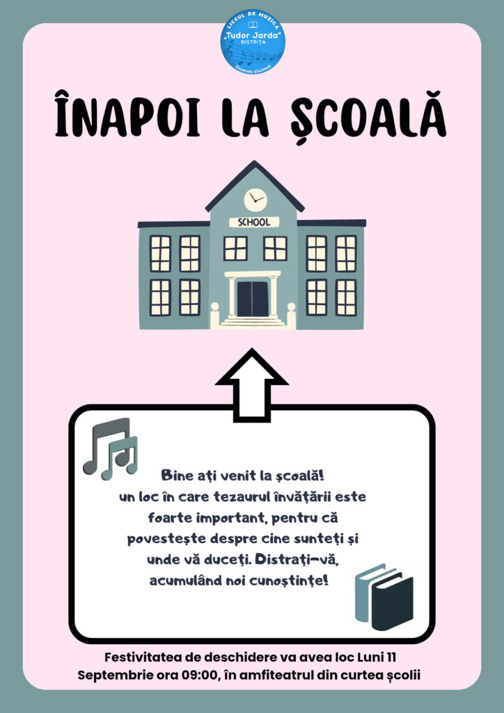 Festivitatea de deschidere va avea loc luni, 11 septembrie, ora 09:00 în amfiteatrul din curtea școlii.