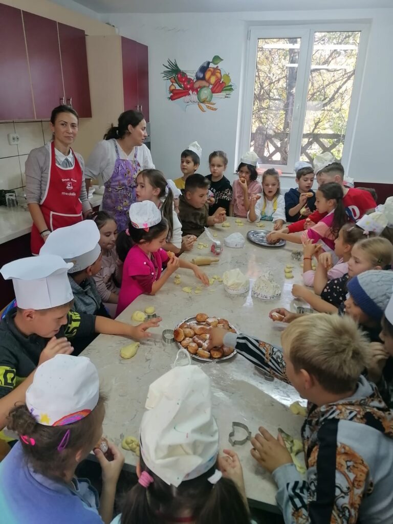 Bucătarii iscusiți ai clasei I pregătesc gogoși delicioase alături de colegii lor de la CSEI nr 2, în Școala altfel.