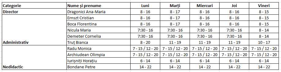 Program de audiențe cu părinții secretariat: Marți 16 – 17, Vineri 8 – 9