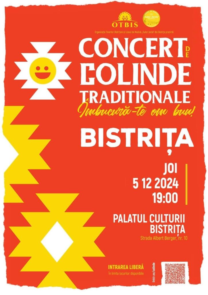 Vă invităm, de data aceasta, la un Concert de Colinde Tradiționale „Îmbucură-te om bun!”, care va avea loc joi 5.12.2024, ora 19, la Palatul Culturii Bistrița.
