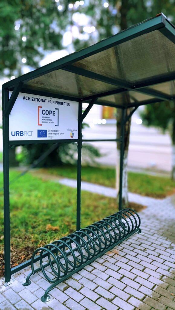 Un rastel modern pentru biciclete, cu acoperiș, a fost instalat prin proiectul COPE, cofinanțat de Uniunea Europeană.